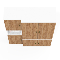 Комплектация состоит из пенала Лидер-8 Пнл и шкафа с выдвижной штангой и полками Лидер-8 Ш20Б, объединенных в единый блок.