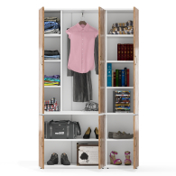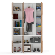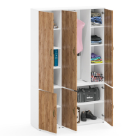 Комплектация состоит из пенала с пятью полками Лидер-8 П22Б и шкафа с выдвижной штангой и полками Лидер-8 Ш20Б, объединенных в единый блок.