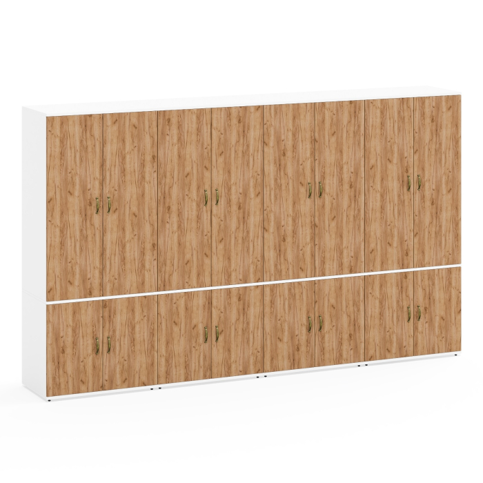 Комплектация состоит из четырёх шкафов глубоких со штангой и полкой Лидер-8 Ш19Б, объединенных в единый блок.