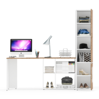 Стол-трансформер СтТ предлагает два варианта сборки - угловой (115х50/80х75 см) или прямой (165х50/30х75 см), что позволяет оптимально использовать доступное пространство. Встроенная тумба стола с четырьмя полками обеспечивает удобное хранение документов и канцелярских принадлежностей. Стол имеет фиксированную конфигурацию - тумба расположена справа, угол открывания справа. Пенал П22Б с двумя дверками и пятью полками идеально подходит для систематичного размещения книг, документов, аксессуаров или предметов декора. Сторону открывания двери можно выбрать при сборке для оптимального размещения в интерьере.