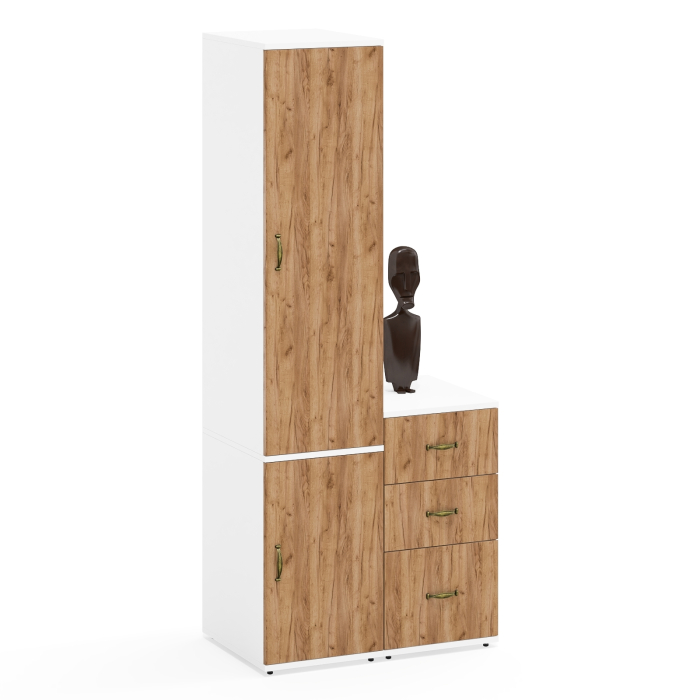 Тумба с тремя выдвижными ящиками и глубокий пенал с дверками Лидер-8 - практичный дуэт для хранения.