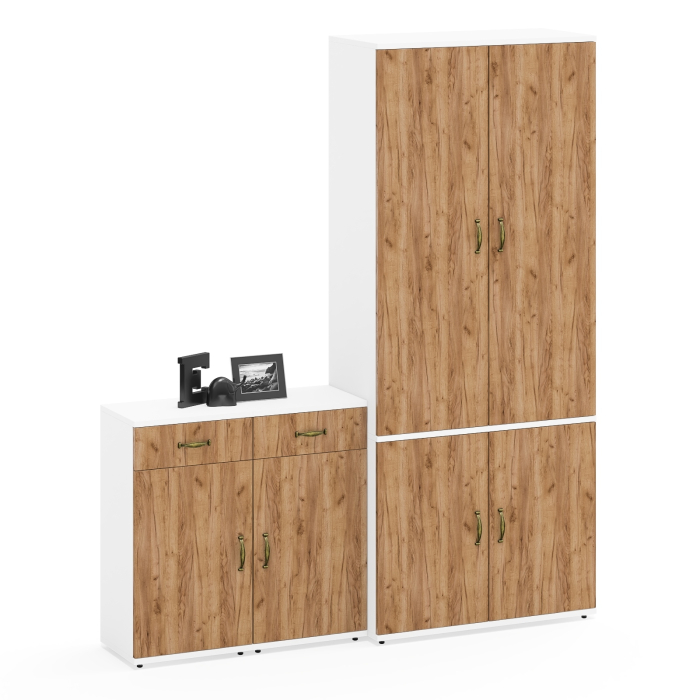 Комплектация состоит из шкафа Лидер-8 Ш20Б и двух тумб с ящиком и дверкой Лидер-8 3.15.