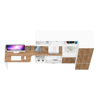 Комплектация состоит из стола-трансформера Лидер-8 СтТ, полки Лидер-8 Плк, тумбы с нишей и дверкой Лидер-8 3.19 и пенала глубокого Лидер-8 П23Б.
