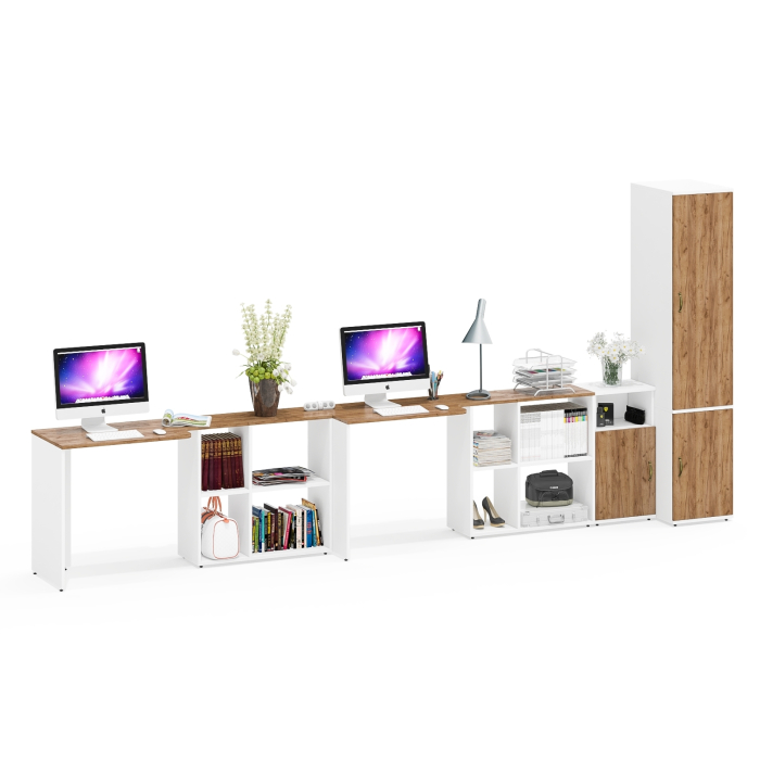Лидер-8 место для работы для двоих из столов с пеналом для одежды с полкой и тумбой МД 3.19 – продуманное рабочее пространство.