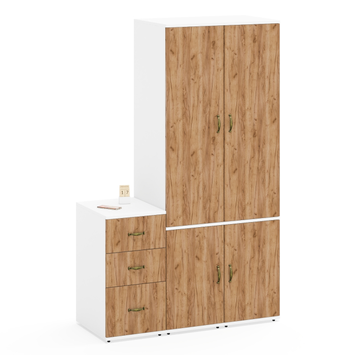 Корпусная мебель Лидер-8 из двух пеналов для белья и одежды 23Б и тумбочки на три ящика – практичное решение для хранения.