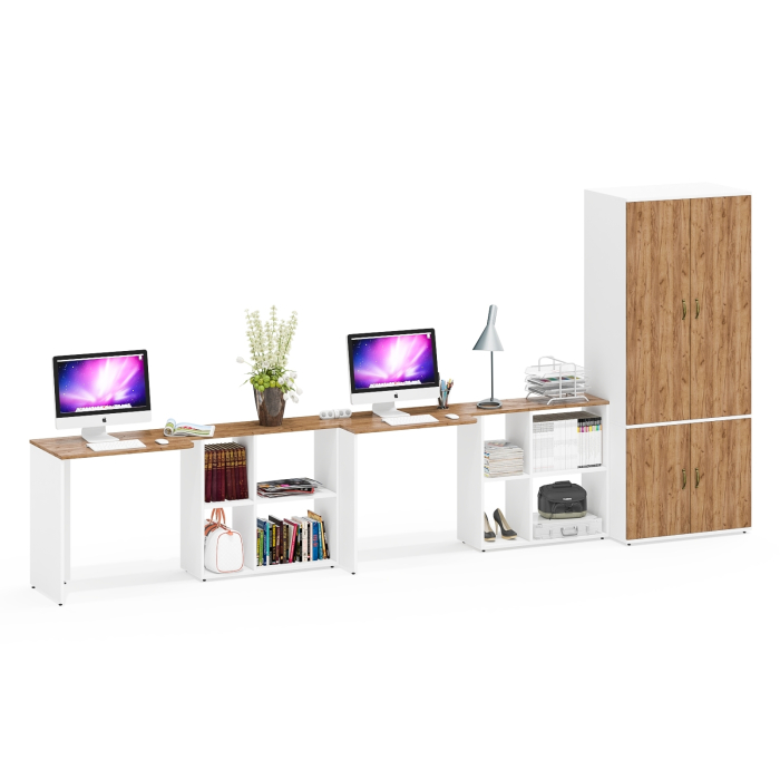 Комплектация состоит из двух столов-трансформеров Лидер-8 СтТ и шкафа глубокого со штангой и полкой Лидер-8 Ш19Б.