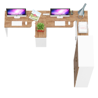 Комплектация состоит из двух столов-трансформеров Лидер-8 СтТ, шкафа Лидер-8 Ш20Б и тумбы с нишей и дверкой Лидер-8 3.19.
