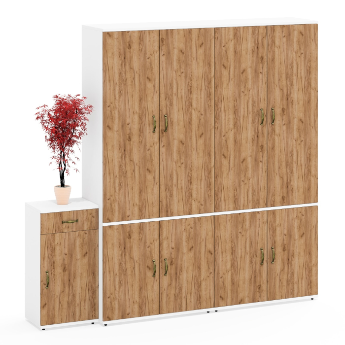 Комплектация состоит из двух шкафов с вешалкой для одежды и полками Лидер-8 Ш20Б и тумбы с ящиком и дверкой Лидер-8 3.15.
