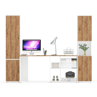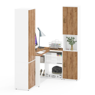 Стол-трансформер СтТ предлагает два варианта сборки - угловой (115х50/80х75 см) или прямой (165х50/30х75 см), что позволяет оптимально использовать доступное пространство. Встроенная тумба стола с четырьмя полками обеспечивает удобное хранение документов и канцелярских принадлежностей. Пенал Пнл оборудован полкой сверху и снизу за распашными дверками и открытой нишей между ними - подходит для хранения книг, документов, создавая аккуратный и стильный вид. Пенал П22Б с двумя дверками и пятью полками идеально подходит для систематичного размещения книг, документов, аксессуаров или предметов декора.