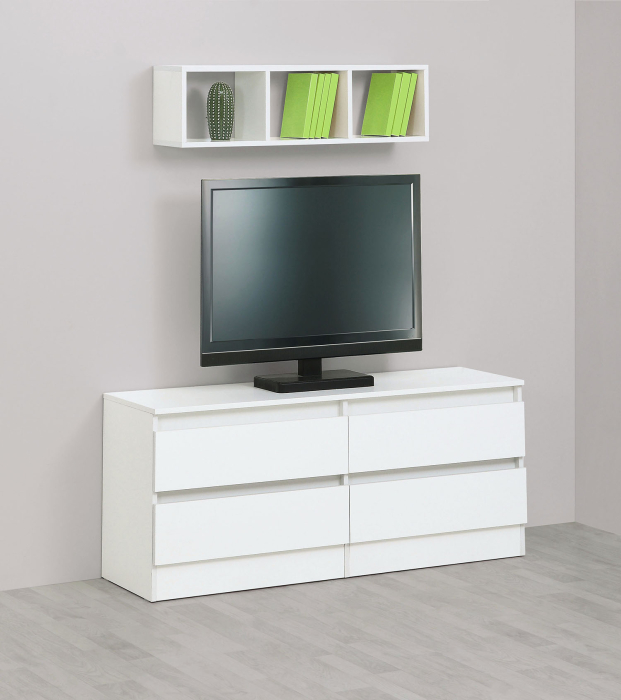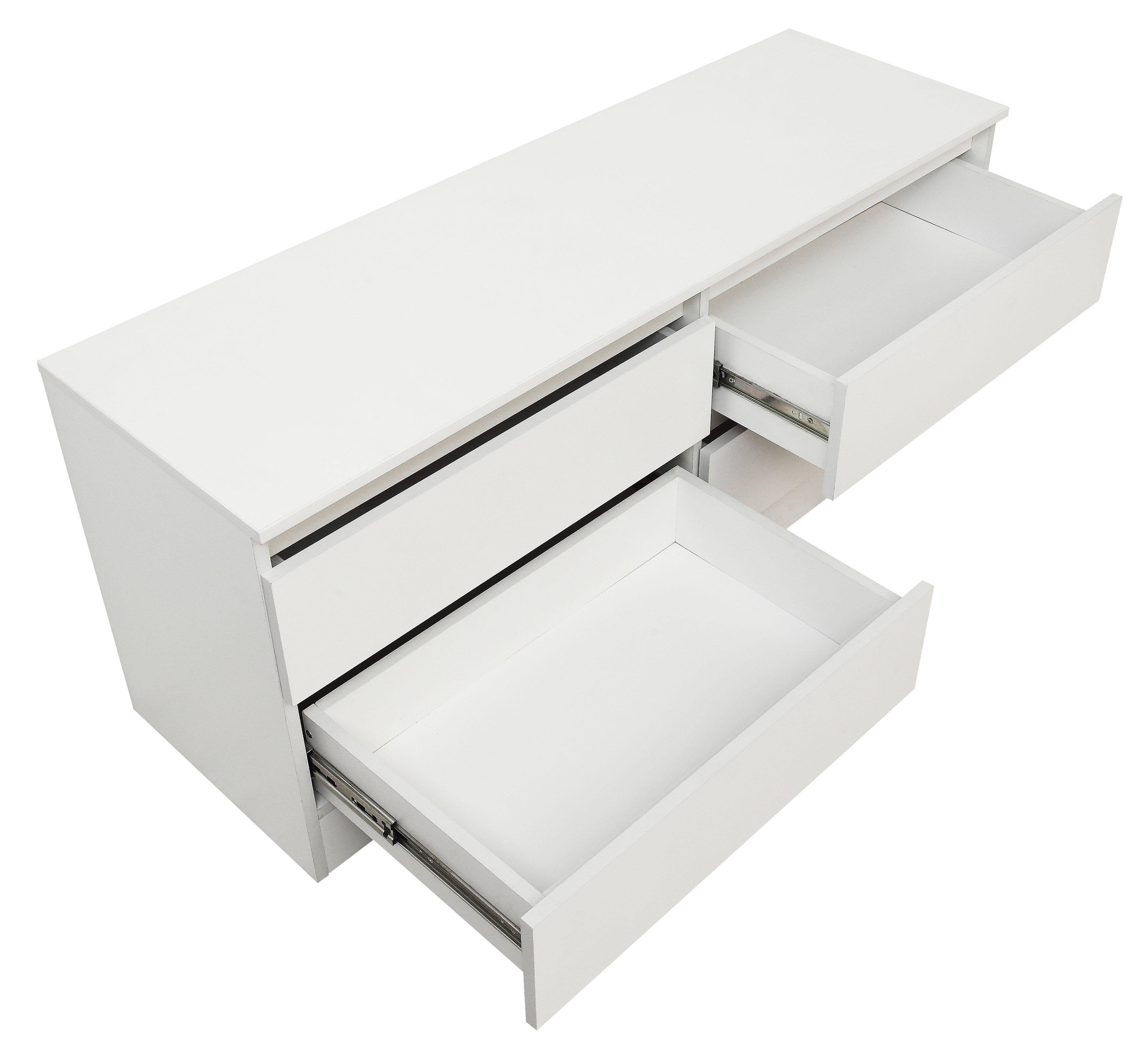 Корпус ЛДСП 16 мм с кромкой ПВХ 0,4 мм; Фасады ЛДСП 16 мм с кромкой ПВХ 0,4 мм; Задняя стенка ДВП текстурная 3,2 мм; Выдвижные ящики ЛДСП 16 мм облицованного кромкой ПВХ 0,4 мм; Дно ДВП текстурная 3,2 мм белого цвета; Механизм выдвижения-металлтические телескопические направляющие
