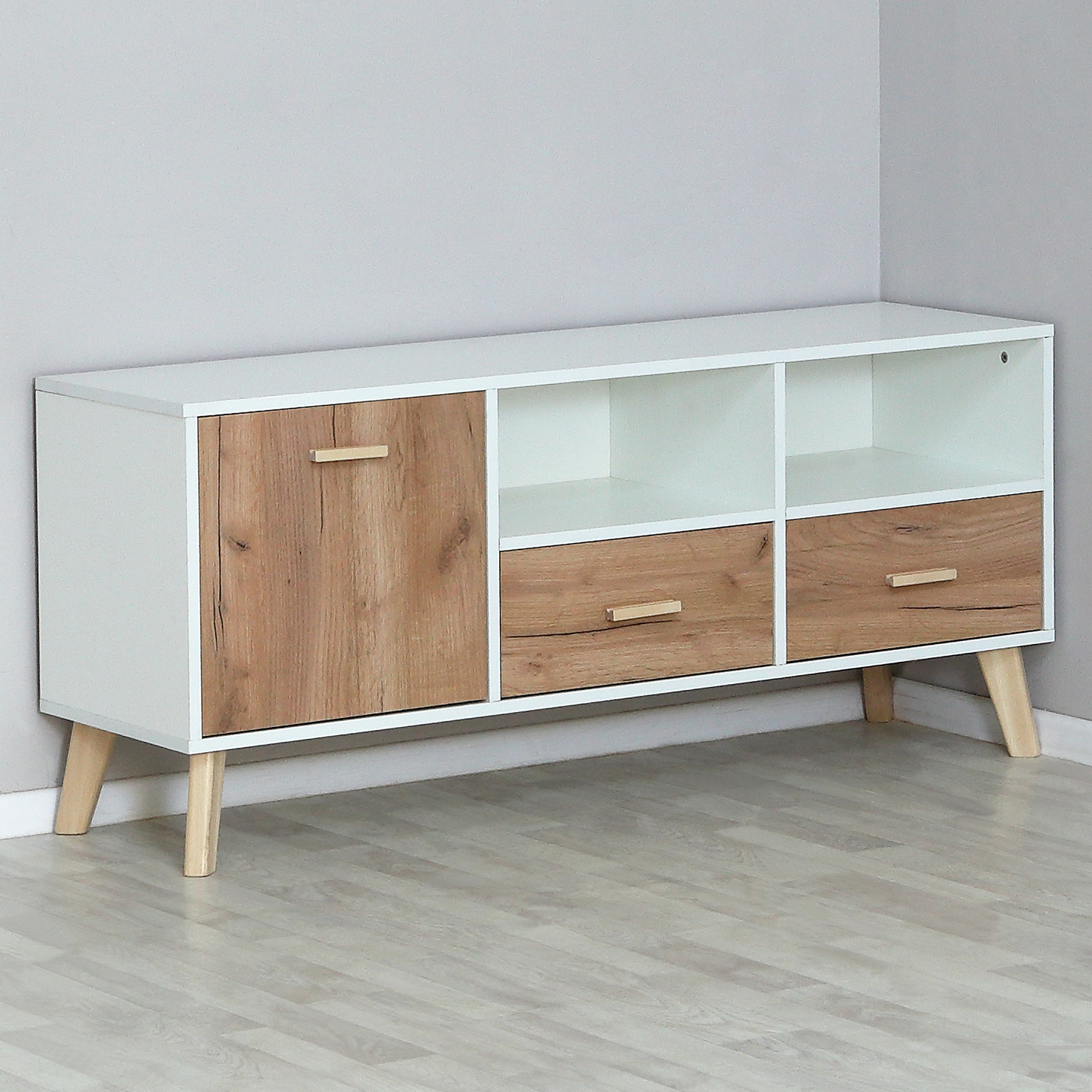Отзывы о Столплит Тумба ТВ 1280х400х570 Скандик Белый жемчуг/Нельсон