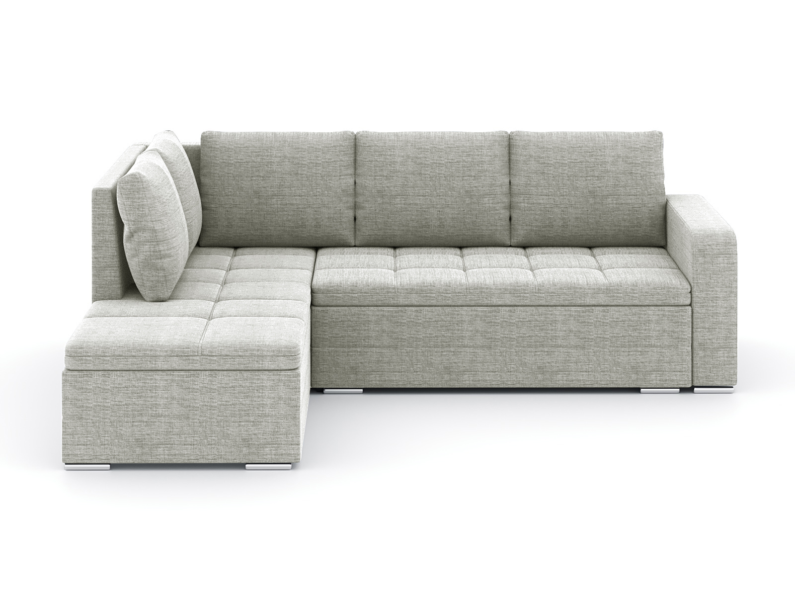 Механизм трансформации еврокнижка. Наполнение высокоэластичный ППУ. Спальное место 2300х1650. Ящик для белья есть. Глубина сиденья без подушек 1020мм. Высота сиденья 420мм. Чехлы подушек съемные, наполнение крошка ППУ. В комплекте 5 больших подушкек.