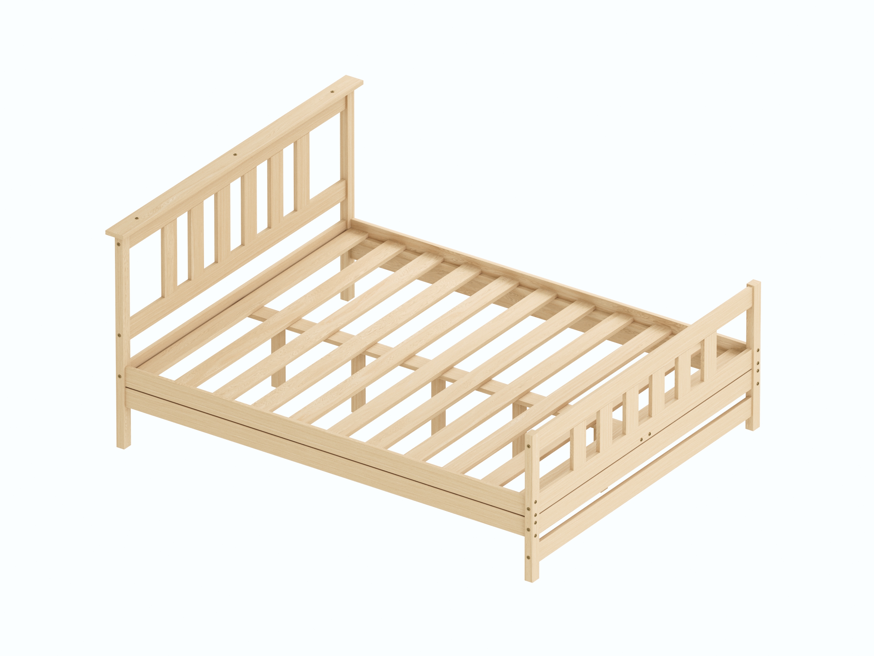 Двуспальная кровать "IRINA 2" ОЧЕНЬ КРЕПКАЯ так как усилена двойными рейками 20*90 мм по всем сторонам кровати. Благодаря 5 опорным стойкам по середине двуспальной кровати устойчивость повышена, чтобы выдерживать максимальный вес 200 кг.