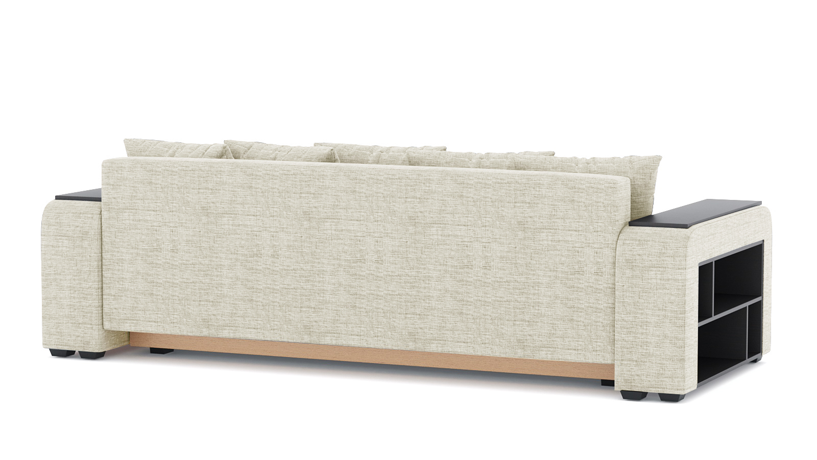 Механизм трансформации-еврокнижка. Наполнение пружинный блок+высокоэластичный ППУ. Каркас ДСП, ДВП, ЛДСП, фанера, брус хвойных пород. Полка ЛДСП только в одном подлокотнике. Ящик для белья-есть. Чехлы подушек-несъемные, наполнение крошка ППУ. Спальное место 2000х1600. Высота сиденья 430мм. Глубина сиденья без подушек 880мм. В комплекте 5 больших подушек и 2 декоративные.