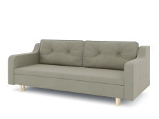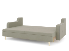 Механизм трансформации еврокнижка-пантограф. Наполнение высокоэластичный ППУ. Жесткость-средняя. Чехлы подушек несъемные, наполнение-крошка ППУ. Каркас ДСП, ДВП, ЛДСП, фанера, брус хвойных пород. Спальное место 1950х1440. Ящик для белья есть. Глубина сиденья без подушек 760мм. Опоры массив березы, высота 150мм. Высота сиденья 42мм. В комплекте 2 большие подушки.