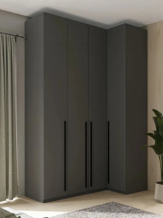 Угловой шкаф для одежды распашной с ящиками и антресолью - это идеальное решение для тех, кто хочет создать гардеробную систему в своем доме или квартире. Этот шкаф имеет три двери, которые открываются в стороны, что обеспечивает удобный доступ ко всем вещам внутри. Кроме того, он оснащен 13 полками и выдвижной внутренней секцией, которая позволяет хранить больше вещей.