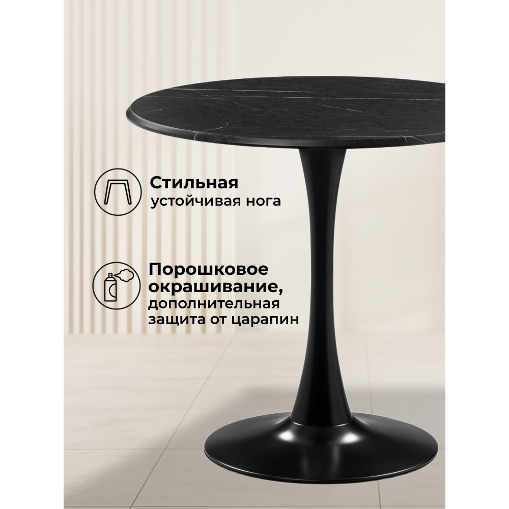 Отзывы о Столплит Стол деревянный Тулип 90х73 Черный Мрамор