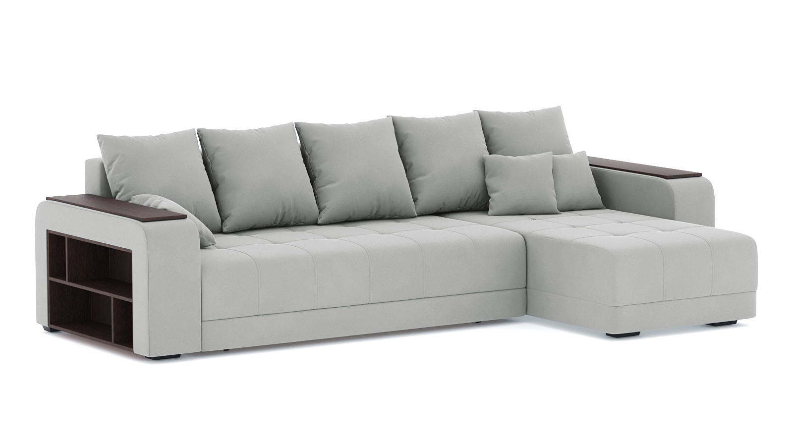 Диван-кровать угловой Дубай еврокнижка, велюр (Светло-серый) Код I0000439416