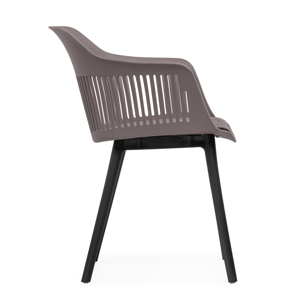 Пластиковый стул Crocs - каркас и спинка из прочного пластика. Мягкое сидение из дышащего материала - рогожки. Цельный каркас с толстыми ножками выдерживает вес до 100 кг. Высота подлокотников: 66 см.