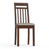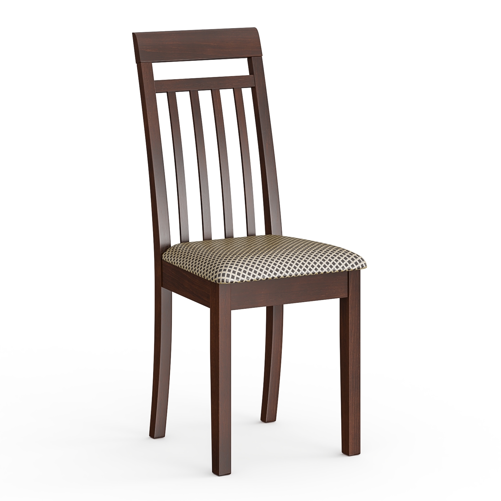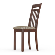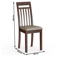 Этот стул станет гармоничным элементом кухни, столовой зоны или гостиной, создавая уют и комфорт в интерьере. Универсальная модель прекрасно впишется в пространство прихожей или кабинета, подчеркивая утончённость стиля. Каркас стула, включая спинку, выполнен из натурального массива дерева, окрашенного в благородный цвет венге. Качественная обработка древесины обеспечивает прочность конструкции и долгий срок службы. Спинка выполнена в виде вертикальной рамки с тремя тонкими планками и одной горизонтальной перекладиной вверху. Такая комбинация делает спинку визуально лёгкой, но при этом прочной.
