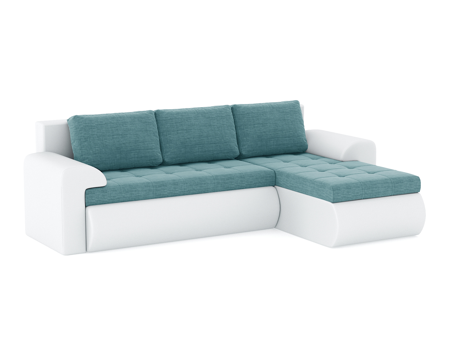 Отзывы о Столплит Диван-кровать угловой Кормак с подлокотниками, рогожка +кож. зам. Лазурный