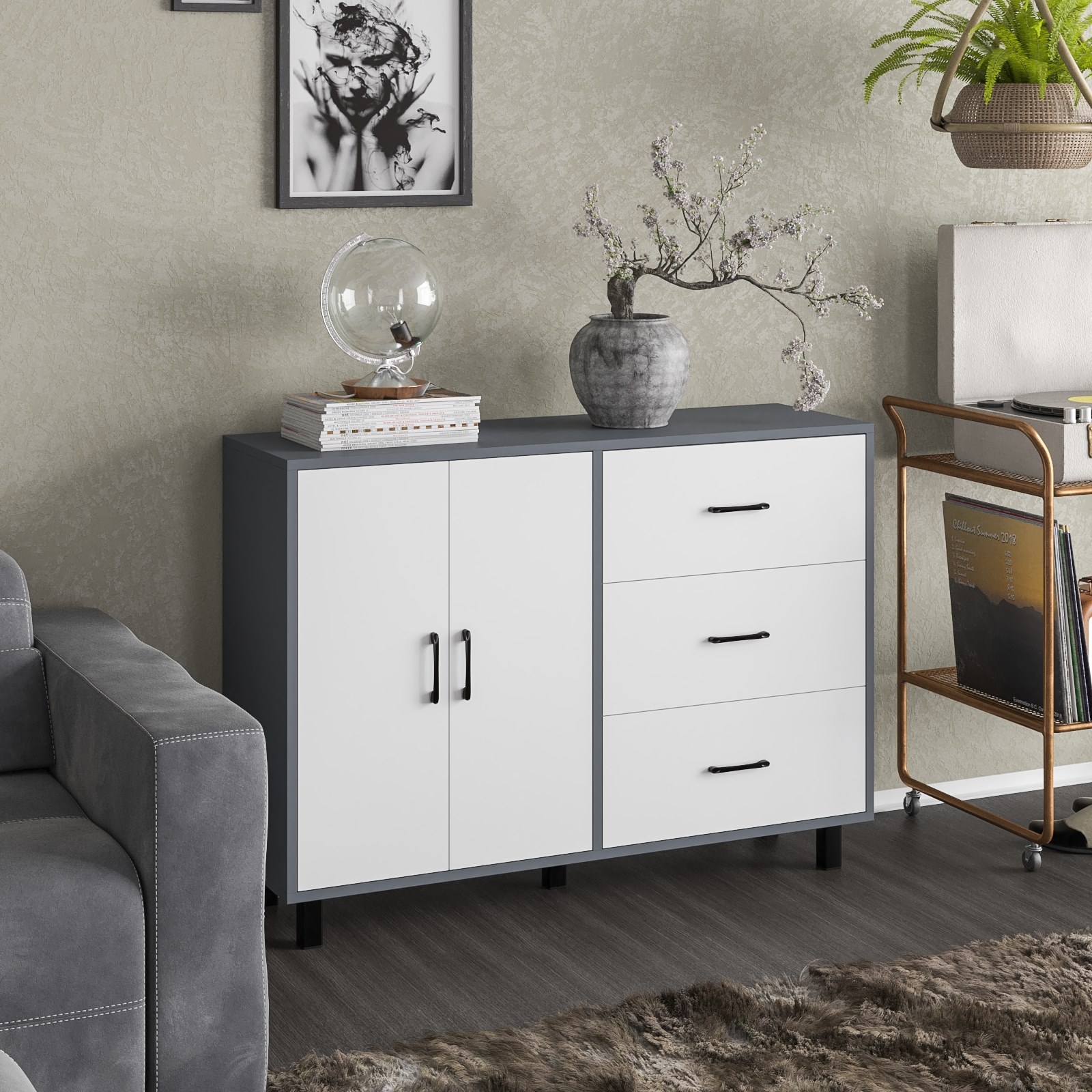 Отзывы о Столплит Комод-тумба две дверки и три ящика РВК 123-1204 Графит/Белый
