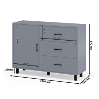 Корпус и фасады выполнены из высококачественной ламинированной ДСП толщиной 16 мм, а торцы надежно обработаны ПВХ-кромкой. Задняя стенка и дно ящиков изготовлены из ламинированной ДВП, что добавляет долговечности конструкции. Обратите внимание, что модель не имеет универсальной сборки - дверка расположена только слева, а ящики – справа. Поставляется в разобранном виде.
