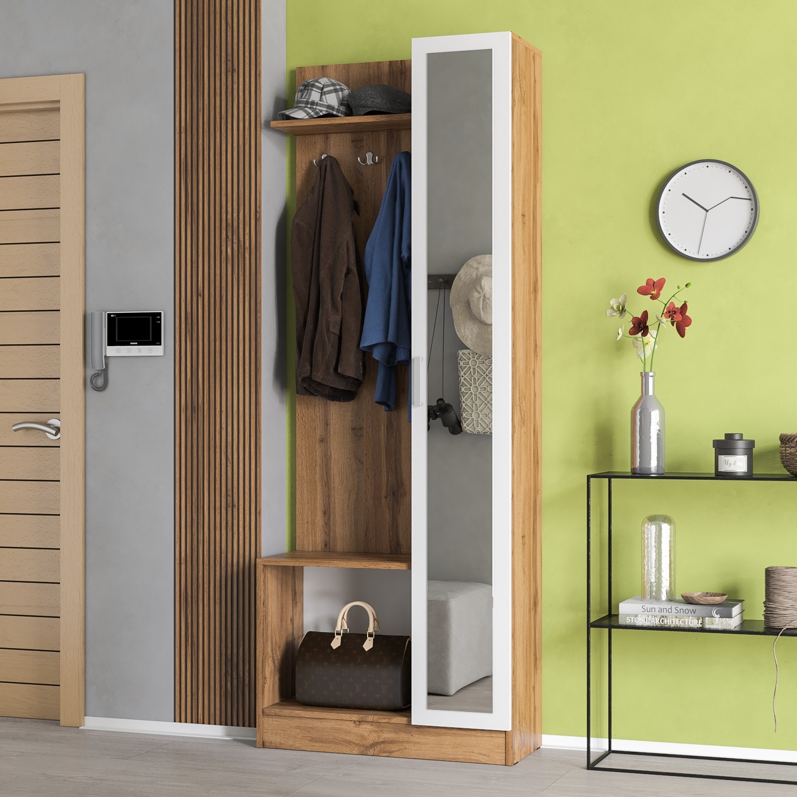 Отзывы о Столплит Прихожая с зеркалом в маленькую прихожую РВК Камелия-8 Белый/Дуб вотан
