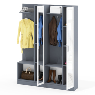 Такой набор позволяет организовать хранение одежды и обуви в едином стиле, обеспечивая порядок и комфорт. Каждая из прихожих легко размещается у стены, идеально подходя для узких коридоров и небольших ниш. Установка двух модулей даёт больше вариантов компоновки — можно установить симметрично по сторонам двери или в разных зонах прихожей.