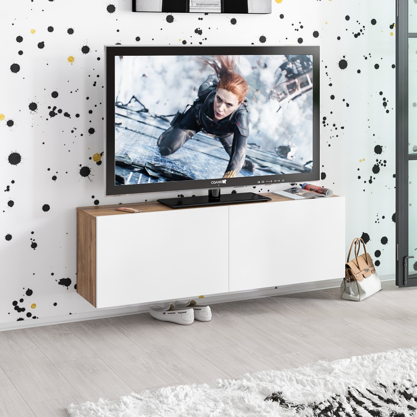 Подвесная ТВ-тумба РВК-1500 — стильный и функциональный элемент интерьера, идеально подходящий для современных гостиных.