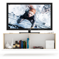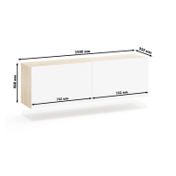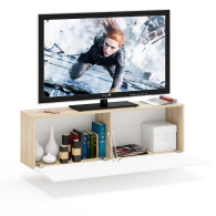Благодаря подвесной конструкции, тумба не занимает место на полу и визуально облегчает пространство. Модель оборудована двумя вместительными отделениями без полок, каждое закрывается откидной дверкой на газлифтах — они обеспечивают плавное и тихое открывание. Такой формат хранения удобно использовать для техники, медиаплееров и прочих аксессуаров. Подвесной формат мебели не только визуально расширяет пространство, но и облегчает уборку под тумбой. Ручки отсутствуют — дверки открываются за край фасадов, сохраняя лаконичный внешний вид. Тумба крепится на стену при помощи трёх угловых навесов, обеспечивающих надёжность и устойчивость конструкции.