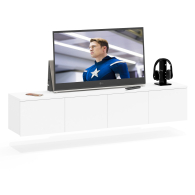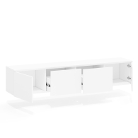 Благодаря подвесной конструкции тумба освобождает пространство на полу и визуально облегчает интерьер. В центральной части тумбы расположены два вместительных выдвижных ящика на шариковых направляющих. По бокам находятся отделения без полок, каждое скрыто за распашной дверкой. Подвесная установка позволяет не только сэкономить пространство, но и упростить уборку и прокладку кабелей. Тумба выполнена без ручек — ящики и дверцы открываются за край фасадов, подчёркивая лаконичный стиль. Монтаж осуществляется с помощью трёх надёжных угловых навесов, обеспечивающих устойчивое крепление на стене.