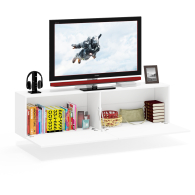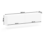 Благодаря подвесному монтажу, модель не занимает место на полу, создаёт ощущение легкости и упрощает уборку. Тумба состоит из двух просторных отделений, скрытых за откидными дверками на газлифтах, обеспечивающими плавное и бесшумное открывание. Отделения не имеют внутренних перегородок, благодаря чему подходят для хранения различной техники, медиаприставок и аксессуаров. Подвесная конструкция облегчает визуальное восприятие пространства и делает интерьер более современным. Фасады не имеют ручек — дверки открываются за край, подчёркивая минималистичный дизайн. Монтаж осуществляется при помощи трёх надёжных угловых навесов, обеспечивающих стабильную фиксацию на стене.