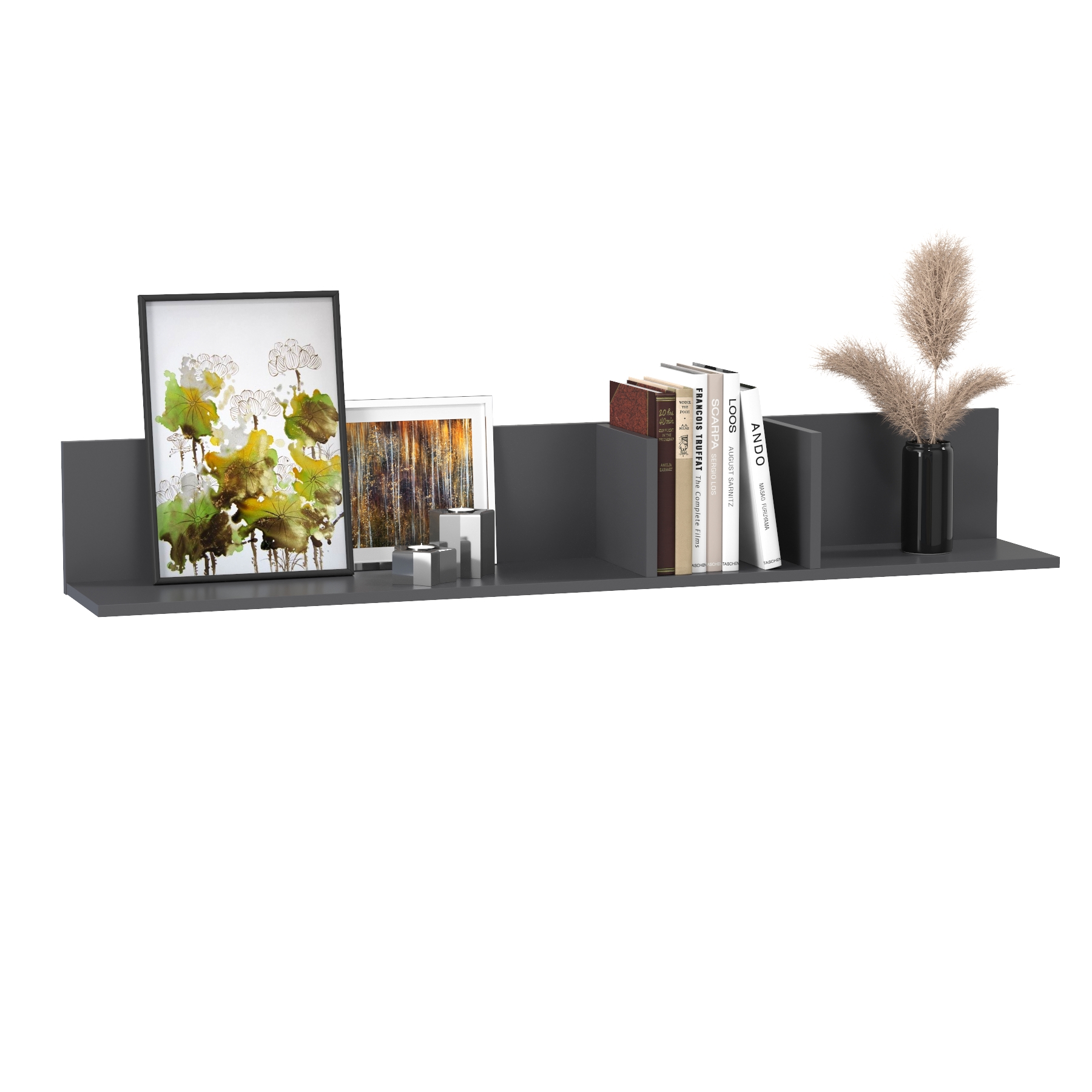 Минималистичный дизайн и универсальный цвет позволяют легко вписать её в любой интерьер. Классическая открытая конструкция с задней панелью придаёт полке завершённый вид и повышает её прочность. С одной стороны полка разделена двумя вертикальными перегородками — удобно для размещения книг, декора и мелочей. Максимальная нагрузка — до 9 кг, что делает её практичным вариантом для повседневного использования. Скрытые крепления обеспечивают аккуратный внешний вид и надёжную фиксацию на стене.