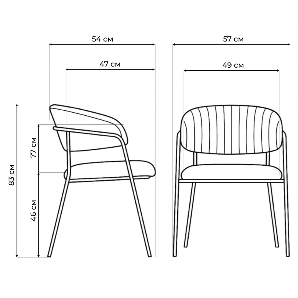 Высота подлокотников: 77 см. Материал каркаса - Металл; Материал сиденья - Велюр; Материал ножек - Металл; Материал обивки - Велюр; Цвет каркаса - Золотой; Цвет ножек - Золотой; Ширина - 57; Глубина - 54; Высота - 83; Ширина сиденья - 49; Глубина сиденья - 47; Высота сиденья - 46.