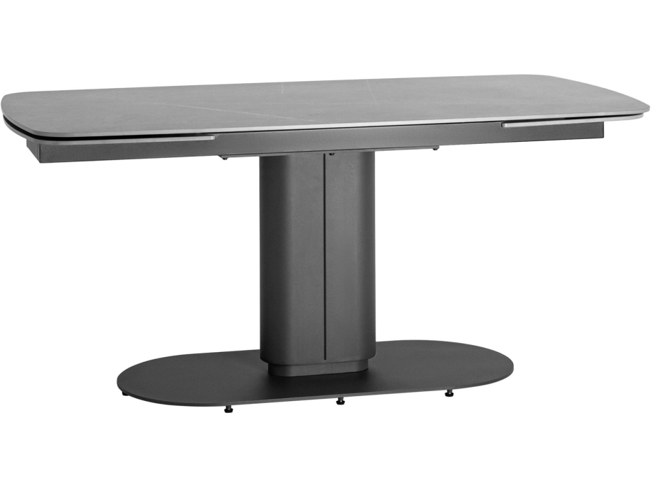 Столешница сделана из керамики - устойчивый, прочный и экологический материал. Закруглённые углы и матовая поверхность придают лёгкость и лаконичный образ. По бокам стола расположены дополнительные раздвижные элементы, которые увеличивают полезную площадь столешницы на 40 или 80 см