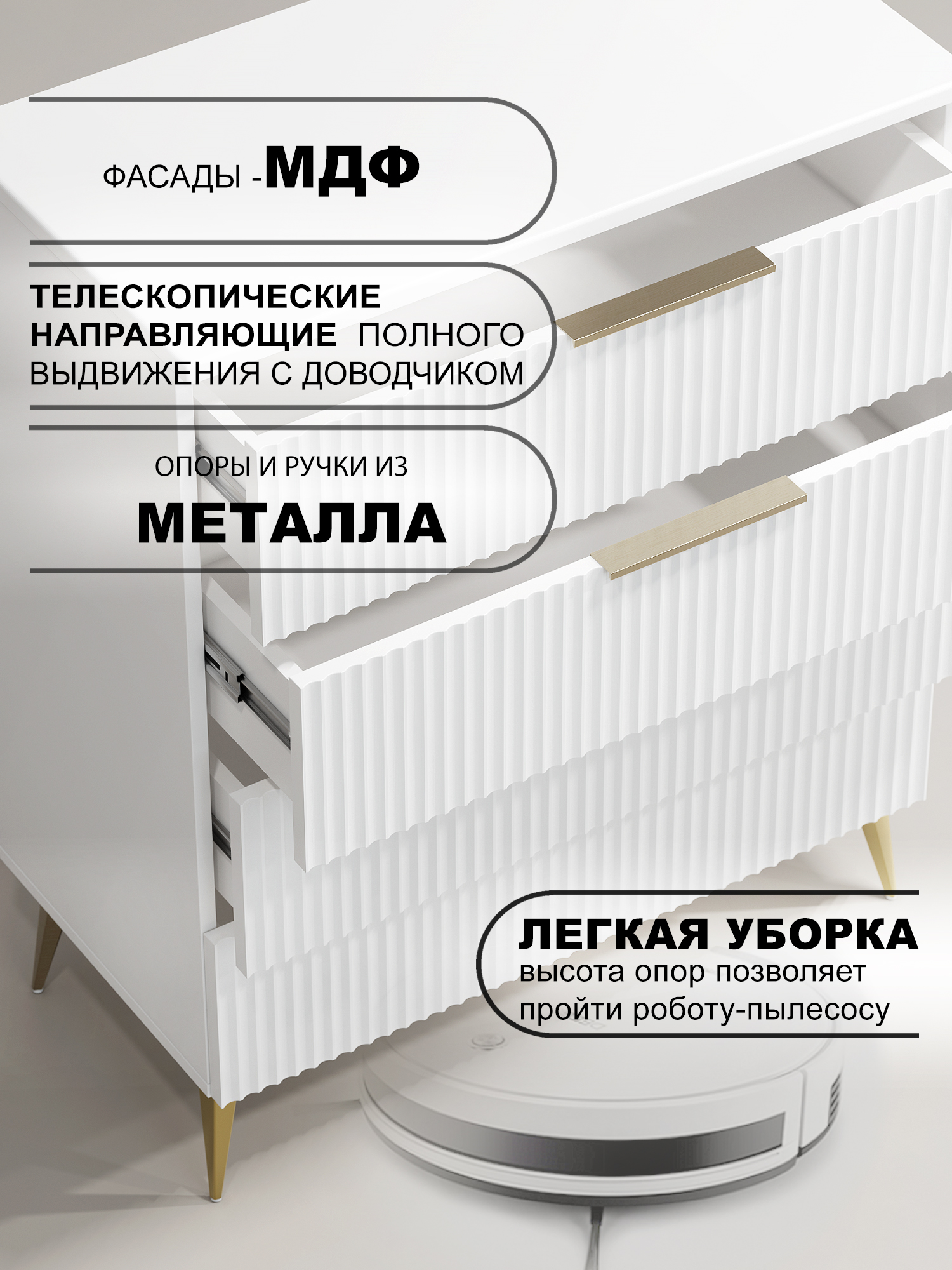 Комод Афина АФ-01 – идеальное решение для современной спальни, гостиной или прихожей. Благодаря продуманной конструкции и качественным материалам он сочетает в себе практичность и эстетику. Комод подойдет для неоклассического и современного интерьера.