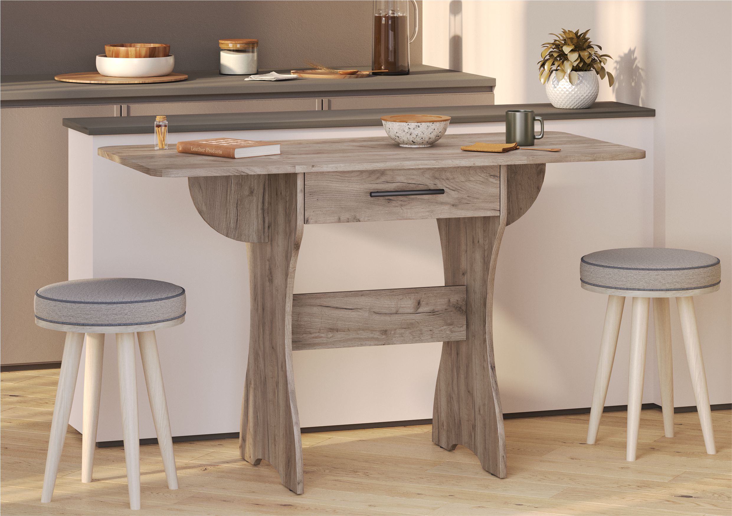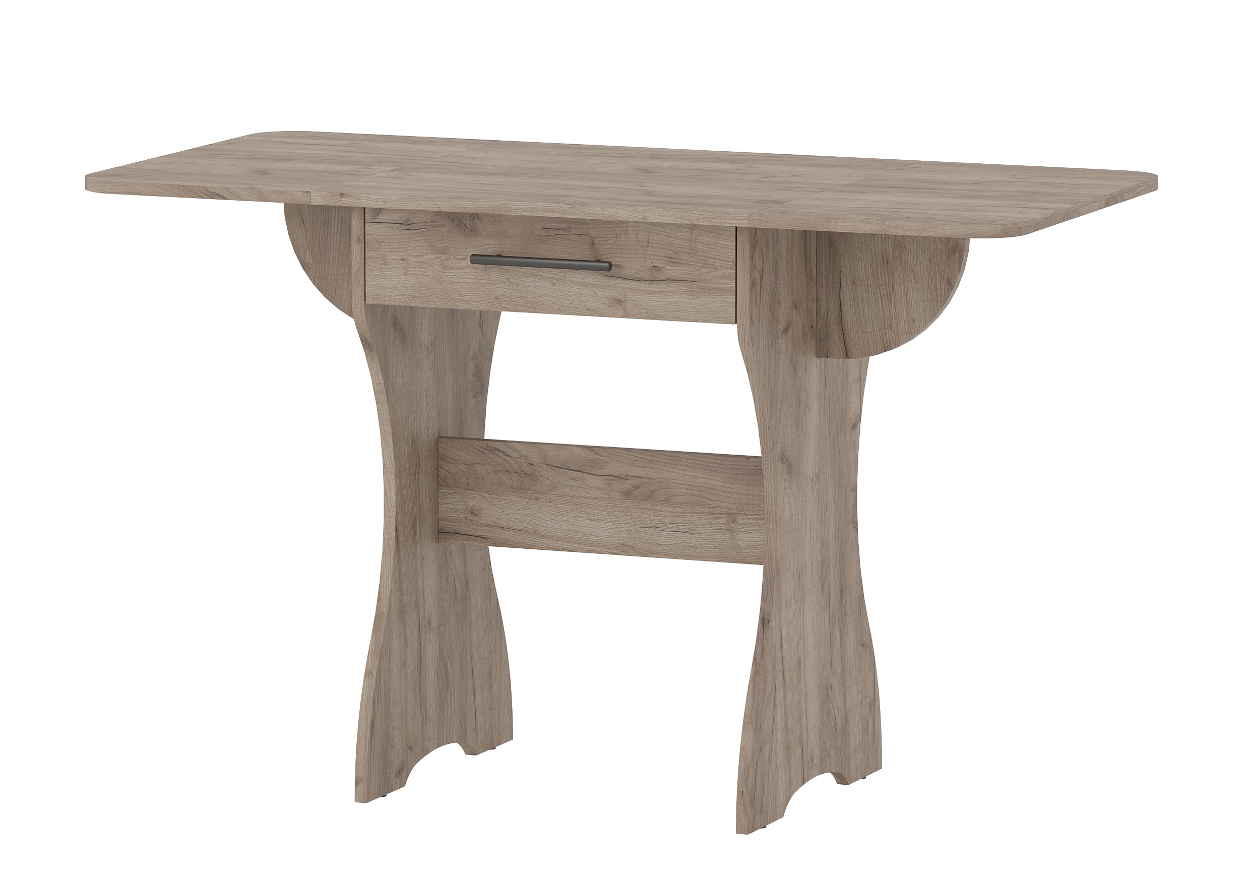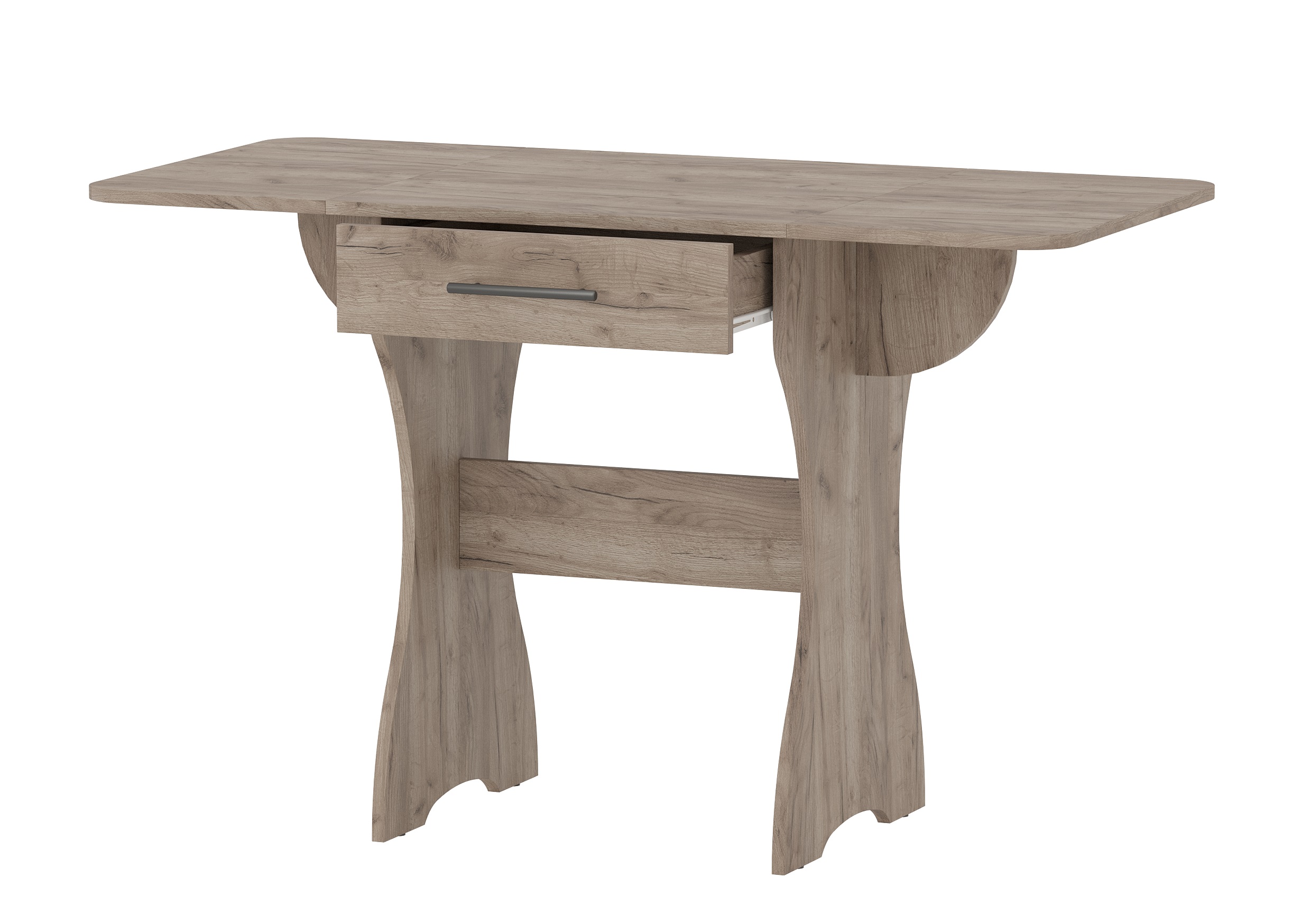 Удобный раскладной кухонный стол с выдвижным ящиком — идеальное решение для компактных и функциональных интерьеров. Надёжная модульная конструкция позволяет быстро трансформировать столешницу: в сложенном виде он занимает всего 600 мм длины, а при необходимости раскладывается до 1200 мм. Под столешницей расположен вместительный выдвижной ящик, в котором можно хранить мелкую кухонную утварь или текстиль.