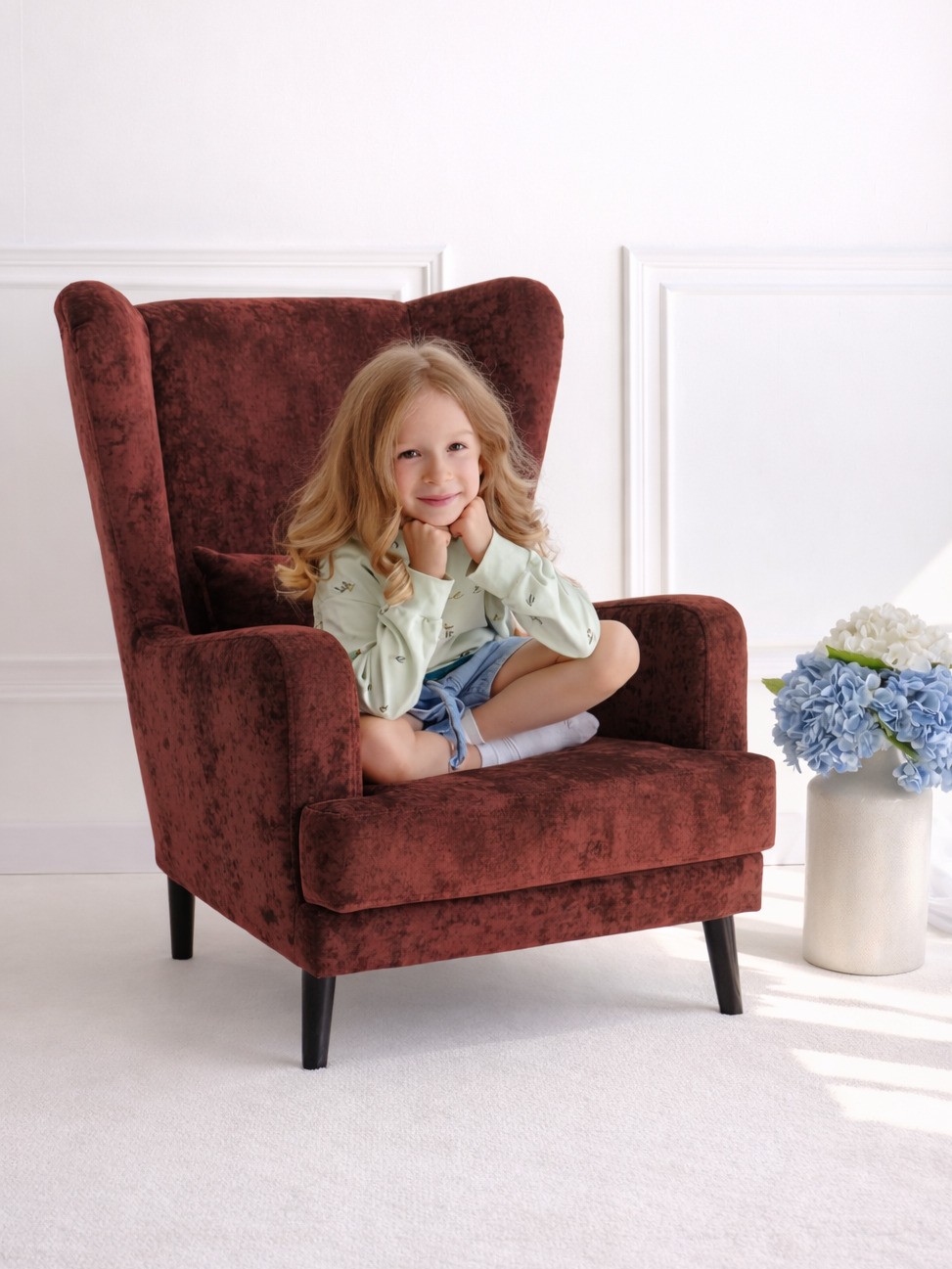 Мягкое кресло Вегас сделано из фанеры и не содержит вредных веществ и материалов, что делает ее безопасной для здоровья и безопасной для окружающей среды. Ткань велюр Crush. Наполнитель ППУ имеет несколько преимуществ перед другими материалами, используемыми в производстве мебели. Во-первых, он обладает высокой упругостью и комфортом, что делает его идеальным для создания мягкой мебели и подушек. Во-вторых, ППУ является долговечным материалом, который не теряет своих свойств со временем и не деформируется при использовании.Высокие опоры создают визуальный эффект легкости и позволяют просто и удобно совершить уборку под креслом не передвигая его. Так же большим плюсом является то, что под креслом проходит любой робот пылесос. Ножки кресла выполнены из массива березы, что делает конструкцию кресла надежной и стабильной. Мягкое кресло на ножках станет оригинальным украшением вашего дома. Выполнено в духе английского кресла с ушами. Выверенные формы спинки, мягкие подлокотники в совокупности с правильной эргономикой посадки и укутывающими боковинами сделают кресло любимцем домочадцев и ваших гостей. Мебель для дома. Мягкая подушка в комплекте способствует более комфортному пребыванию в каминном кресле. Плотное соединение нитей препятствует образованию «зацепок» и выбивающихся ниток, не растягивается. Выдерживает нагрузку до 150 кг. Просим обратить внимание, что опоры могут быть вложены внутрь подушки. Классическое широкое кресло - это не только универсальная и стильная мебель, но и функциональное дизайнерское решение для любого помещения. Может быть использовано в разных комнатах, включая гостиную или кухню, у камина для комфортного размещения гостей, в спальню для релаксации, отдыха и чтения книг. В детской комнате можно разместить кресло и использовать для кормления или укачивания детей. Благодаря универсальному яркому дизайну данный предмет мебели впишется в рабочий кабинет, офис, салон красоты и лаунж зону, чтобы ваши клиенты могли чувствовать себя комфортно и расслабленно. Если вы ищете мебель для своей дачи или балкона, то компактное кресло станет идеальным выбором. При правильном подборе цвета ткани кресло будет гармонично смотреться в таких стилях, как: скандинавский, классический, прованс и лофт. Для полного вашего расслабления мы предусмотрели дополнительную опцию поддержки для ног у этого кресла для дома (что очень важно для профилактики заболеваний сосудов). К каждому нашему мягкому креслу вы сможете приобрести пуф в цвет кресла схожий по дизайну. Собрать тем самым полный комплект для домашнего отдыха (пуфик приобретается отдельно).Мы ответственно подходим к подбору материалов для изготовления каждого изделия. Также мы тщательно проверяем мебель перед отправкой нашим дорогим клиентам. Нам важно, чтобы вы гордились покупкой. Ведь это значит, что мы не зря каждое утро приходим на работу!В процессе эксплуатации рекомендуем периодически пылесосить обивку на минимальной мощности с использованием узкой насадки для мебели. Таким образом, вы сможете устранить с поверхности ткани пыль и шерсть животных. Слабые загрязнения можно удалить влажными салфетками, допустимо применение мыльного раствора с нейтральным Ph (например, детское мыло). Также для продления ощущения новизны и лоска ткани рекомендуем время 