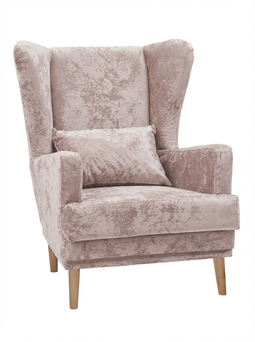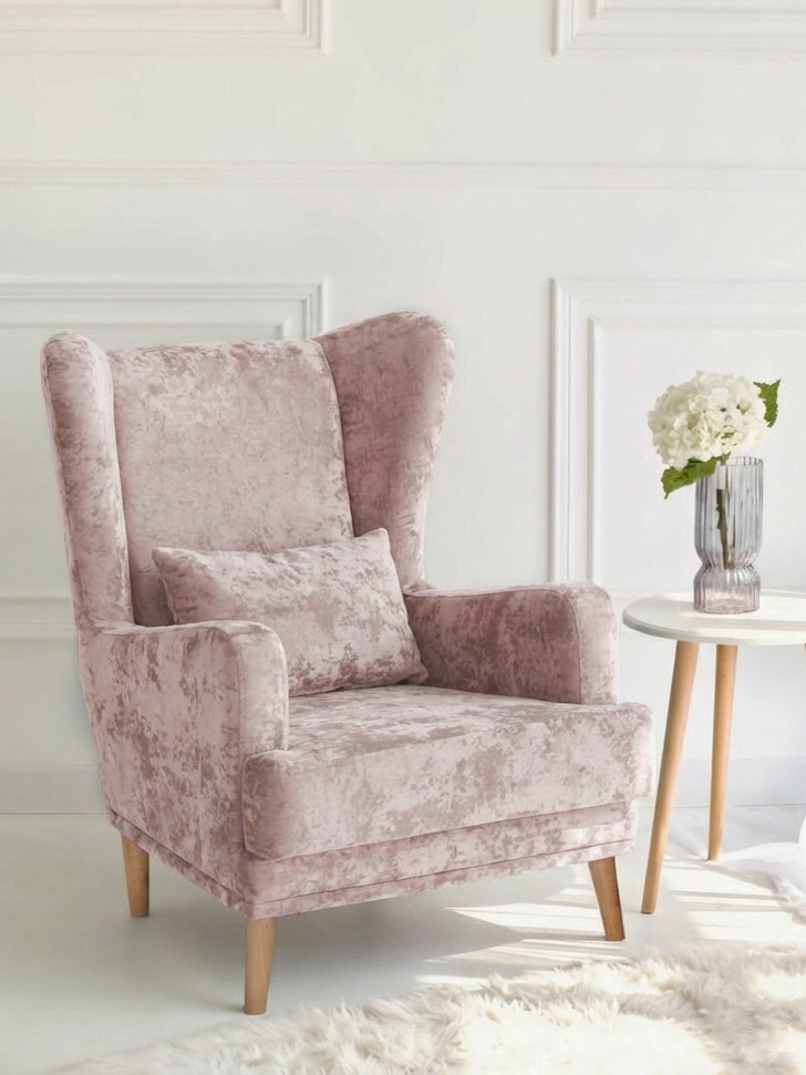 Мягкое кресло Вегас сделано из фанеры и не содержит вредных веществ и материалов, что делает ее безопасной для здоровья и безопасной для окружающей среды. Ткань велюр Crush. Наполнитель ППУ имеет несколько преимуществ перед другими материалами, используемыми в производстве мебели. Во-первых, он обладает высокой упругостью и комфортом, что делает его идеальным для создания мягкой мебели и подушек. Во-вторых, ППУ является долговечным материалом, который не теряет своих свойств со временем и не деформируется при использовании.Высокие опоры создают визуальный эффект легкости и позволяют просто и удобно совершить уборку под креслом не передвигая его. Так же большим плюсом является то, что под креслом проходит любой робот пылесос. Ножки кресла выполнены из массива березы, что делает конструкцию кресла надежной и стабильной. Мягкое кресло на ножках станет оригинальным украшением вашего дома. Выполнено в духе английского кресла с ушами. Выверенные формы спинки, мягкие подлокотники в совокупности с правильной эргономикой посадки и укутывающими боковинами сделают кресло любимцем домочадцев и ваших гостей. Мебель для дома. Мягкая подушка в комплекте способствует более комфортному пребыванию в каминном кресле. Плотное соединение нитей препятствует образованию «зацепок» и выбивающихся ниток, не растягивается. Выдерживает нагрузку до 150 кг. Просим обратить внимание, что опоры могут быть вложены внутрь подушки. Классическое широкое кресло - это не только универсальная и стильная мебель, но и функциональное дизайнерское решение для любого помещения. Может быть использовано в разных комнатах, включая гостиную или кухню, у камина для комфортного размещения гостей, в спальню для релаксации, отдыха и чтения книг. В детской комнате можно разместить кресло и использовать для кормления или укачивания детей. Благодаря универсальному яркому дизайну данный предмет мебели впишется в рабочий кабинет, офис, салон красоты и лаунж зону, чтобы ваши клиенты могли чувствовать себя комфортно и расслабленно. Если вы ищете мебель для своей дачи или балкона, то компактное кресло станет идеальным выбором. При правильном подборе цвета ткани кресло будет гармонично смотреться в таких стилях, как: скандинавский, классический, прованс и лофт. Для полного вашего расслабления мы предусмотрели дополнительную опцию поддержки для ног у этого кресла для дома (что очень важно для профилактики заболеваний сосудов). К каждому нашему мягкому креслу вы сможете приобрести пуф в цвет кресла схожий по дизайну. Собрать тем самым полный комплект для домашнего отдыха (пуфик приобретается отдельно).Мы ответственно подходим к подбору материалов для изготовления каждого изделия. Также мы тщательно проверяем мебель перед отправкой нашим дорогим клиентам. Нам важно, чтобы вы гордились покупкой. Ведь это значит, что мы не зря каждое утро приходим на работу!В процессе эксплуатации рекомендуем периодически пылесосить обивку на минимальной мощности с использованием узкой насадки для мебели. Таким образом, вы сможете устранить с поверхности ткани пыль и шерсть животных. Слабые загрязнения можно удалить влажными салфетками, допустимо применение мыльного раствора с нейтральным Ph (например, детское мыло). Также для продления ощущения новизны и лоска ткани рекомендуем время 