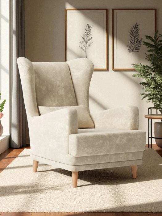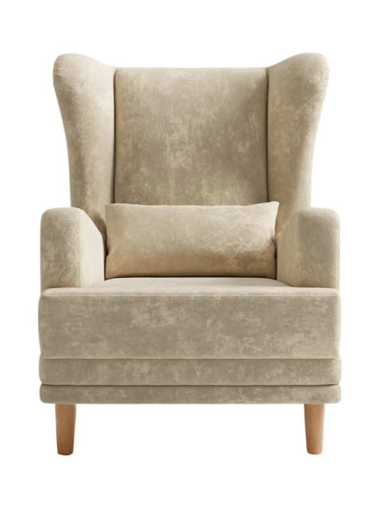 Мягкое кресло Вегас сделано из фанеры и не содержит вредных веществ и материалов, что делает ее безопасной для здоровья и безопасной для окружающей среды. Ткань велюр Crush. Наполнитель ППУ имеет несколько преимуществ перед другими материалами, используемыми в производстве мебели. Во-первых, он обладает высокой упругостью и комфортом, что делает его идеальным для создания мягкой мебели и подушек. Во-вторых, ППУ является долговечным материалом, который не теряет своих свойств со временем и не деформируется при использовании.Высокие опоры создают визуальный эффект легкости и позволяют просто и удобно совершить уборку под креслом не передвигая его. Так же большим плюсом является то, что под креслом проходит любой робот пылесос. Ножки кресла выполнены из массива березы, что делает конструкцию кресла надежной и стабильной. Мягкое кресло на ножках станет оригинальным украшением вашего дома. Выполнено в духе английского кресла с ушами. Выверенные формы спинки, мягкие подлокотники в совокупности с правильной эргономикой посадки и укутывающими боковинами сделают кресло любимцем домочадцев и ваших гостей. Мебель для дома. Мягкая подушка в комплекте способствует более комфортному пребыванию в каминном кресле. Плотное соединение нитей препятствует образованию «зацепок» и выбивающихся ниток, не растягивается. Выдерживает нагрузку до 150 кг. Просим обратить внимание, что опоры могут быть вложены внутрь подушки. Классическое широкое кресло - это не только универсальная и стильная мебель, но и функциональное дизайнерское решение для любого помещения. Может быть использовано в разных комнатах, включая гостиную или кухню, у камина для комфортного размещения гостей, в спальню для релаксации, отдыха и чтения книг. В детской комнате можно разместить кресло и использовать для кормления или укачивания детей. Благодаря универсальному яркому дизайну данный предмет мебели впишется в рабочий кабинет, офис, салон красоты и лаунж зону, чтобы ваши клиенты могли чувствовать себя комфортно и расслабленно. Если вы ищете мебель для своей дачи или балкона, то компактное кресло станет идеальным выбором. При правильном подборе цвета ткани кресло будет гармонично смотреться в таких стилях, как: скандинавский, классический, прованс и лофт. Для полного вашего расслабления мы предусмотрели дополнительную опцию поддержки для ног у этого кресла для дома (что очень важно для профилактики заболеваний сосудов). К каждому нашему мягкому креслу вы сможете приобрести пуф в цвет кресла схожий по дизайну. Собрать тем самым полный комплект для домашнего отдыха (пуфик приобретается отдельно).Мы ответственно подходим к подбору материалов для изготовления каждого изделия. Также мы тщательно проверяем мебель перед отправкой нашим дорогим клиентам. Нам важно, чтобы вы гордились покупкой. Ведь это значит, что мы не зря каждое утро приходим на работу!В процессе эксплуатации рекомендуем периодически пылесосить обивку на минимальной мощности с использованием узкой насадки для мебели. Таким образом, вы сможете устранить с поверхности ткани пыль и шерсть животных. Слабые загрязнения можно удалить влажными салфетками, допустимо применение мыльного раствора с нейтральным Ph (например, детское мыло). Также для продления ощущения новизны и лоска ткани рекомендуем время 