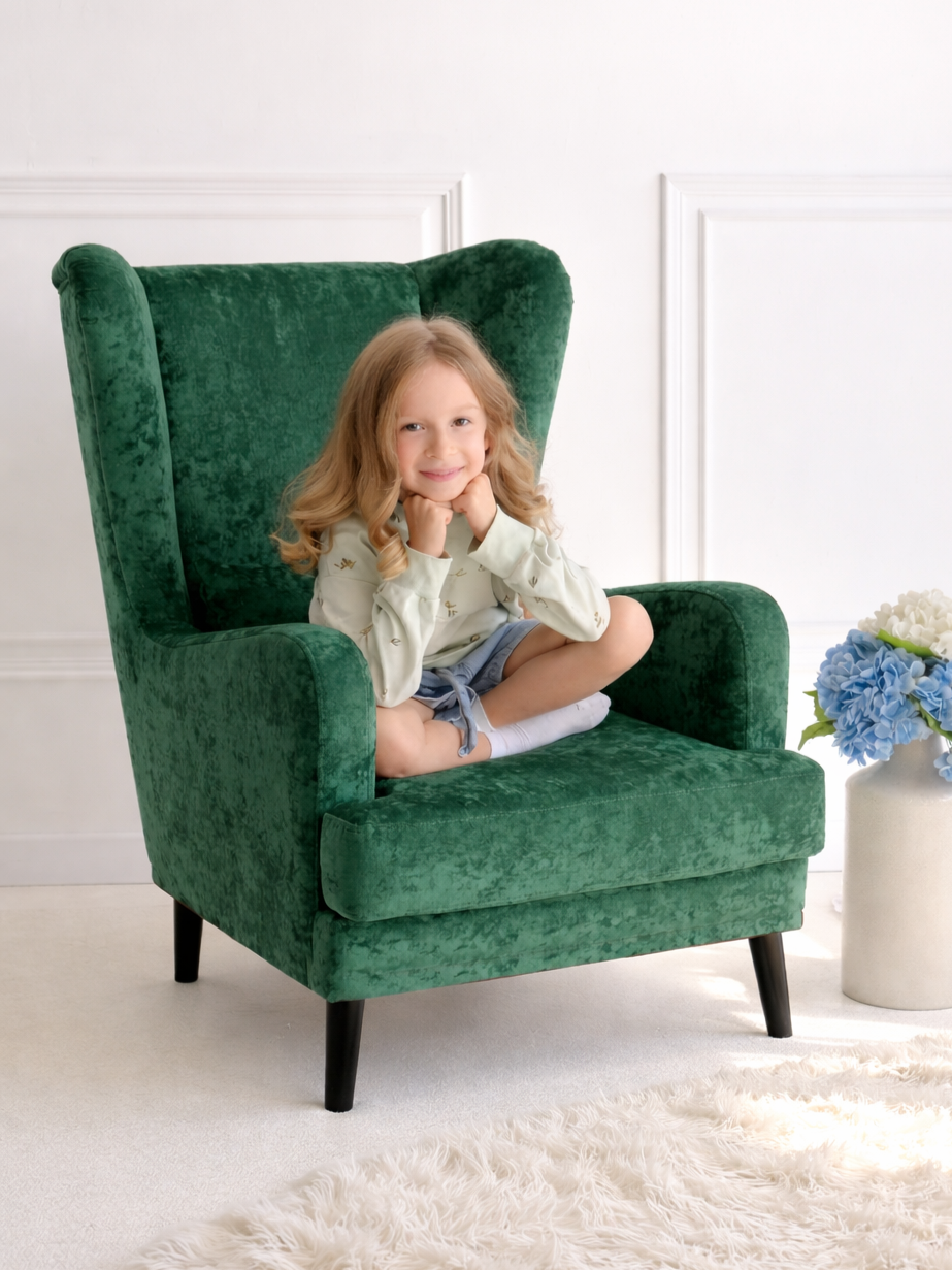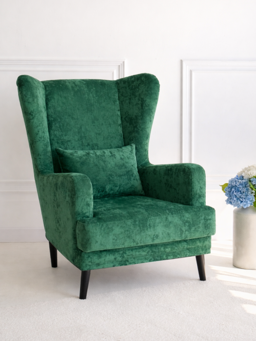 Мягкое кресло Вегас сделано из фанеры и не содержит вредных веществ и материалов, что делает ее безопасной для здоровья и безопасной для окружающей среды. Ткань велюр Crush. Наполнитель ППУ имеет несколько преимуществ перед другими материалами, используемыми в производстве мебели. Во-первых, он обладает высокой упругостью и комфортом, что делает его идеальным для создания мягкой мебели и подушек. Во-вторых, ППУ является долговечным материалом, который не теряет своих свойств со временем и не деформируется при использовании.Высокие опоры создают визуальный эффект легкости и позволяют просто и удобно совершить уборку под креслом не передвигая его. Так же большим плюсом является то, что под креслом проходит любой робот пылесос. Ножки кресла выполнены из массива березы, что делает конструкцию кресла надежной и стабильной. Мягкое кресло на ножках станет оригинальным украшением вашего дома. Выполнено в духе английского кресла с ушами. Выверенные формы спинки, мягкие подлокотники в совокупности с правильной эргономикой посадки и укутывающими боковинами сделают кресло любимцем домочадцев и ваших гостей. Мебель для дома. Мягкая подушка в комплекте способствует более комфортному пребыванию в каминном кресле. Плотное соединение нитей препятствует образованию «зацепок» и выбивающихся ниток, не растягивается. Выдерживает нагрузку до 150 кг. Просим обратить внимание, что опоры могут быть вложены внутрь подушки. Классическое широкое кресло - это не только универсальная и стильная мебель, но и функциональное дизайнерское решение для любого помещения. Может быть использовано в разных комнатах, включая гостиную или кухню, у камина для комфортного размещения гостей, в спальню для релаксации, отдыха и чтения книг. В детской комнате можно разместить кресло и использовать для кормления или укачивания детей. Благодаря универсальному яркому дизайну данный предмет мебели впишется в рабочий кабинет, офис, салон красоты и лаунж зону, чтобы ваши клиенты могли чувствовать себя комфортно и расслабленно. Если вы ищете мебель для своей дачи или балкона, то компактное кресло станет идеальным выбором. При правильном подборе цвета ткани кресло будет гармонично смотреться в таких стилях, как: скандинавский, классический, прованс и лофт. Для полного вашего расслабления мы предусмотрели дополнительную опцию поддержки для ног у этого кресла для дома (что очень важно для профилактики заболеваний сосудов). К каждому нашему мягкому креслу вы сможете приобрести пуф в цвет кресла схожий по дизайну. Собрать тем самым полный комплект для домашнего отдыха (пуфик приобретается отдельно).Мы ответственно подходим к подбору материалов для изготовления каждого изделия. Также мы тщательно проверяем мебель перед отправкой нашим дорогим клиентам. Нам важно, чтобы вы гордились покупкой. Ведь это значит, что мы не зря каждое утро приходим на работу!В процессе эксплуатации рекомендуем периодически пылесосить обивку на минимальной мощности с использованием узкой насадки для мебели. Таким образом, вы сможете устранить с поверхности ткани пыль и шерсть животных. Слабые загрязнения можно удалить влажными салфетками, допустимо применение мыльного раствора с нейтральным Ph (например, детское мыло). Также для продления ощущения новизны и лоска ткани рекомендуем время 