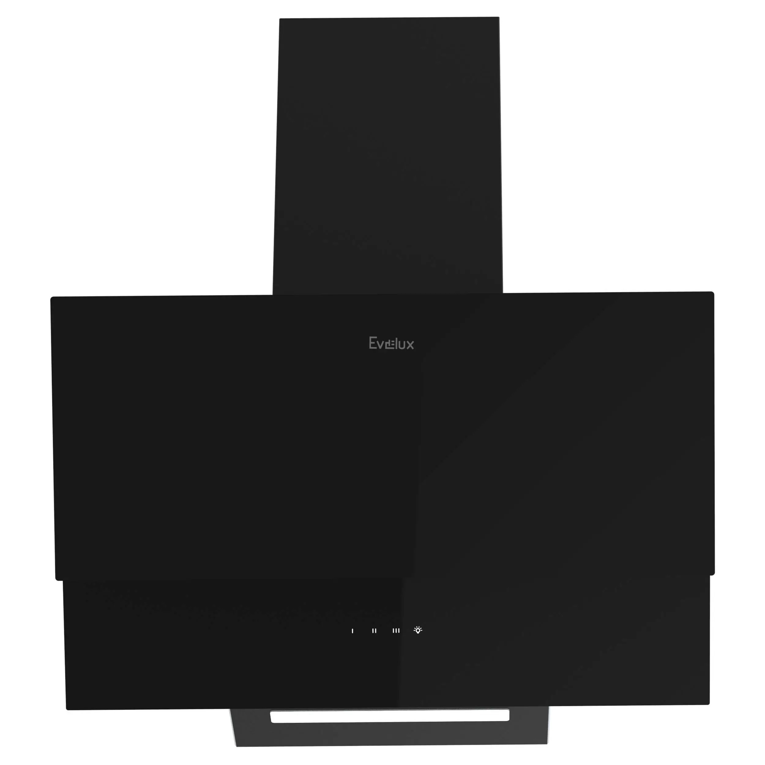 Наклонная вытяжка, 60 см, электронное управление, сенсорная панель, 3 скорости работы, производительность 950 м³/ч, LED освещение, черный, металл, стекло, 600х340х380-607 мм.