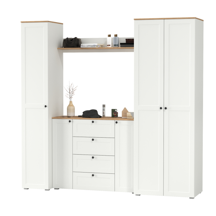 Шкаф и шкаф-пенал с комодом и полкой Остин для прихожей – современное решение для прихожей, сочетающее стиль, практичность и функциональность.