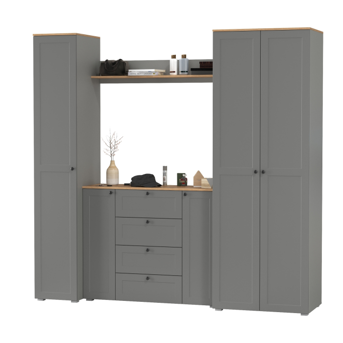 Шкаф и шкаф-пенал с комодом и полкой Остин для прихожей – современное решение для прихожей, сочетающее стиль, практичность и функциональность.