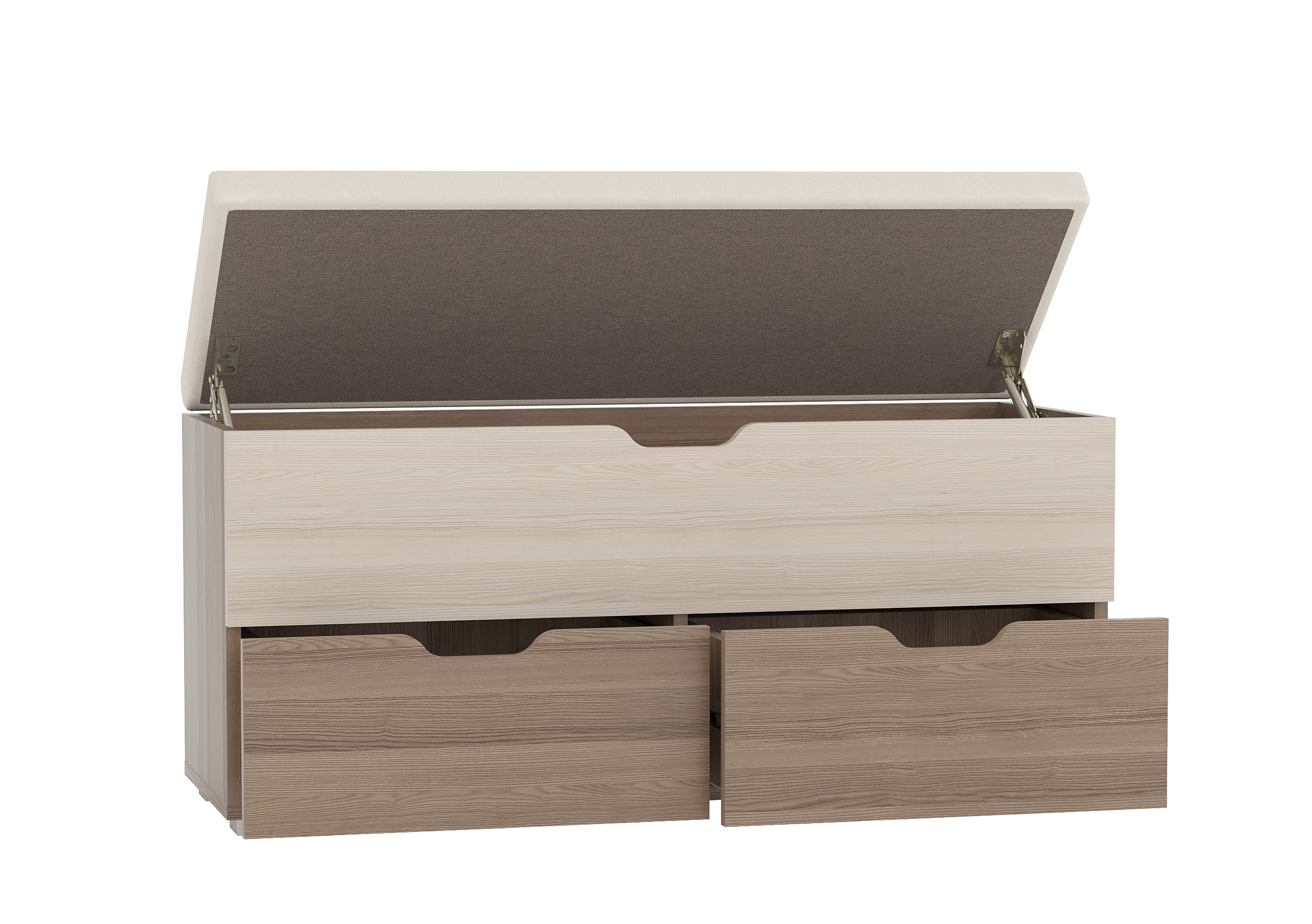 Диван для прихожей "Флинт" стилизован под сундук с мягкой верхней откидной крышкой и двумя вместительными ящиками, это позволяет хранить различные вещи и мелочи, что так необходимо для прихожей.