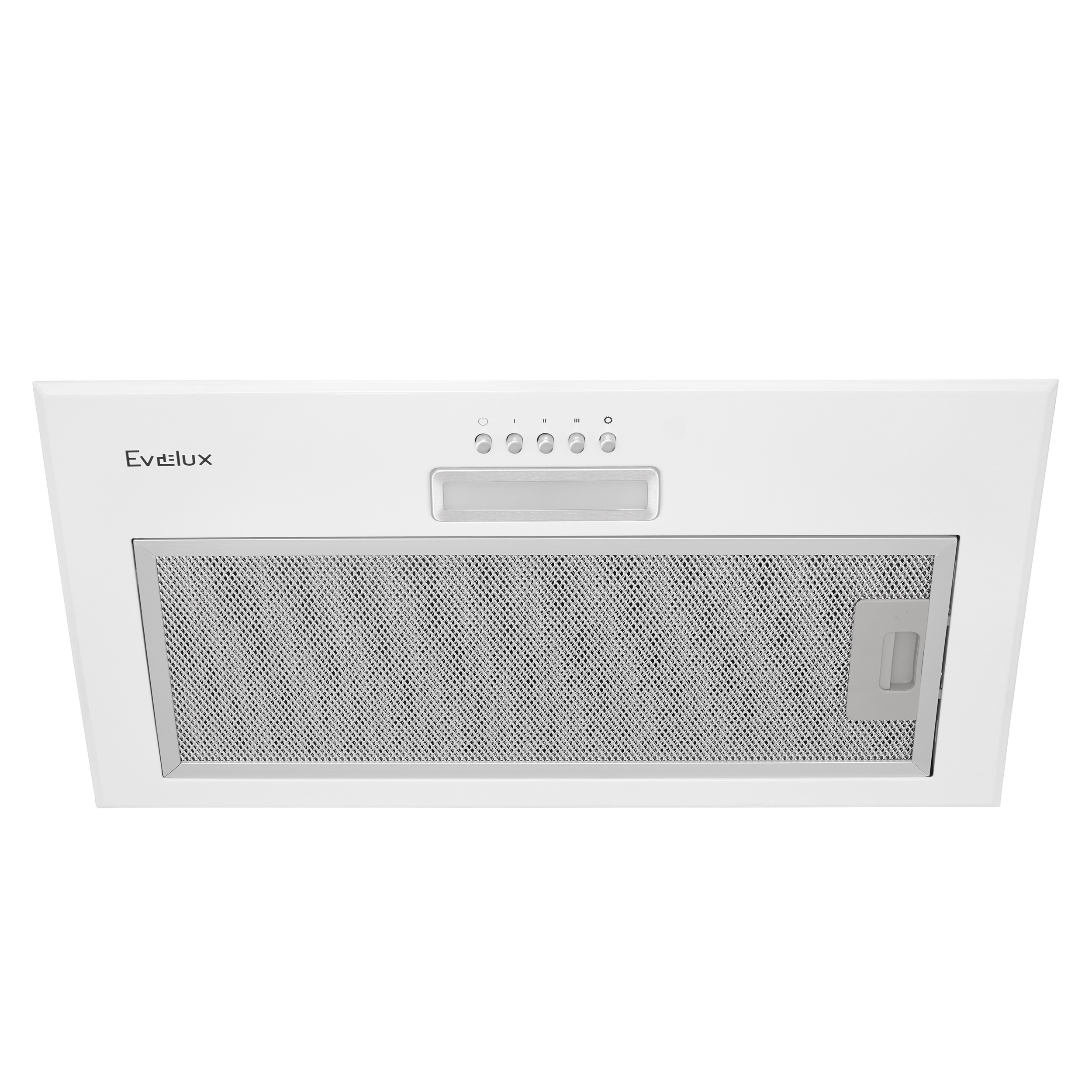 Встраиваемая вытяжка, полновстраиваемая в шкаф, 60 см, отвод/циркуляция, механический контроль, 3 скорости работы, производительность 750 м³/ч, LED освещение, металл, белый,525x291х276 мм.