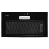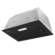 Встраиваемая вытяжка, полновстраиваемая в шкаф, 60 см, отвод/циркуляция, механический контроль, 3 скорости работы, производительность 750 м³/ч, LED освещение, металл, черный, 525x291х276 мм.