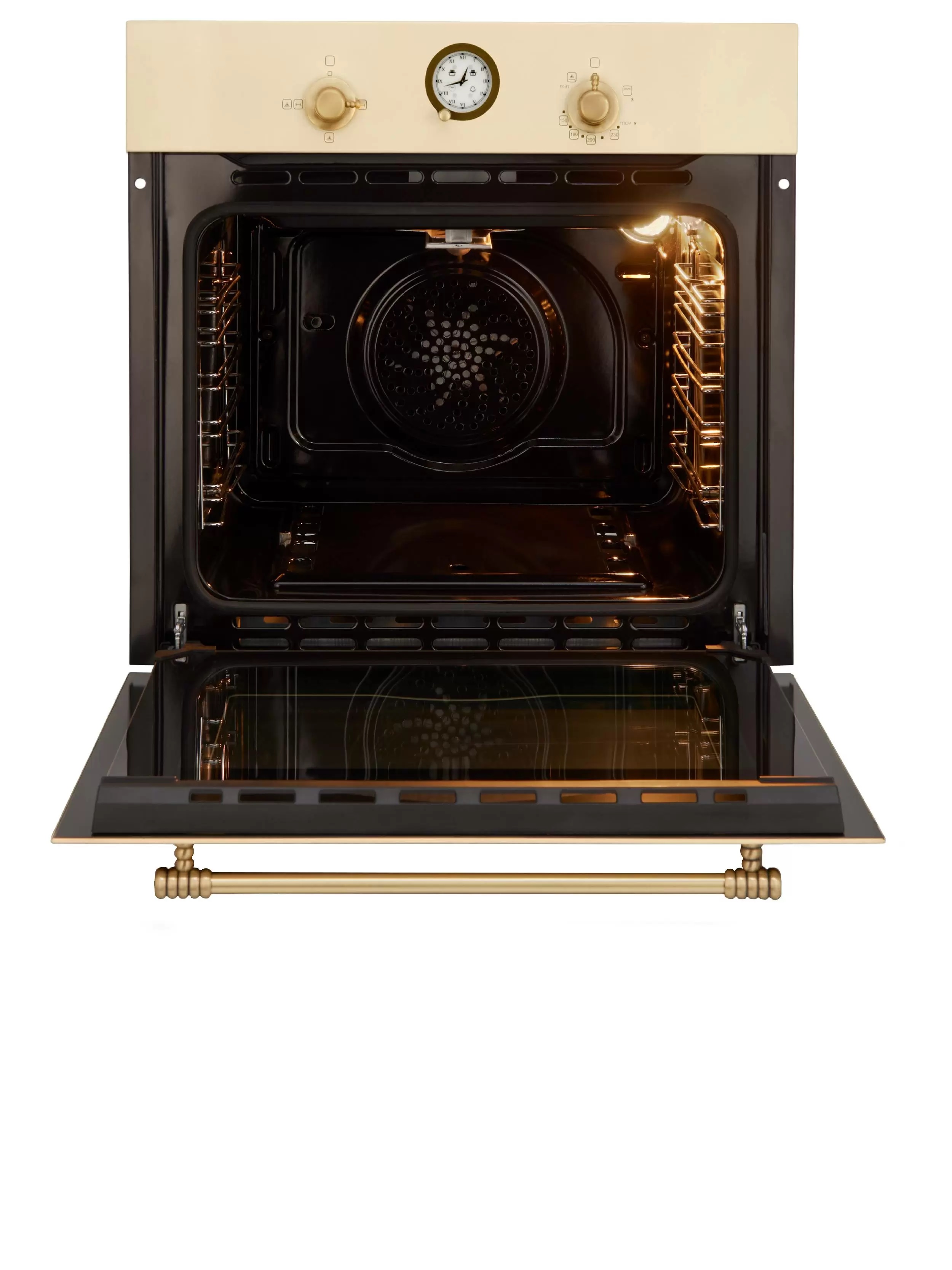 Духовой шкаф встраиваемый полноразмерный,газовый,бежевый,retro,60 см,4 режима, объем духовки 67л, поворотные переключатели, автоподжиг, 5 уровней размещения противней, боковые хромированные рещетки,вертел, универсальный противень, решетка, двойное стекло дверцы, защитное отключение,система охлаждения корпуса, механический таймер,595 х 560 х 575 мм.