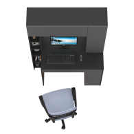 Удобный и устойчивый, с тумбой под системный блок и выдвижным ящиком для канцелярии, дополнен практичной надстройкой. Надстройка с вместительной нишей за откидным фасадом и распашным отделением с полкой, выделяет на столе удобную нишу для монитора. Закрытые отделения стола хранят деловые тайны, а пять полок стеллажа - документы, книги в удобной близости. Тумба расположена с правой стороны стола компьютерного, стеллаж - с левой. Дверки и ящик стола открываются за край фасада. Распашные двери мебели на четырёхшарнирных петлях без доводчиков, откидные фасады - на газовых лифтах, ручки - пластик. В выдвижных ящиках столов и тумб используются металлические направляющие.